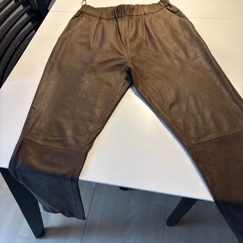 Smukke leggings i det blødeste skind fra Depeche. Der er stræk i skindet. Taljemål er 80 cm. Farven er ikke rød, men PINK