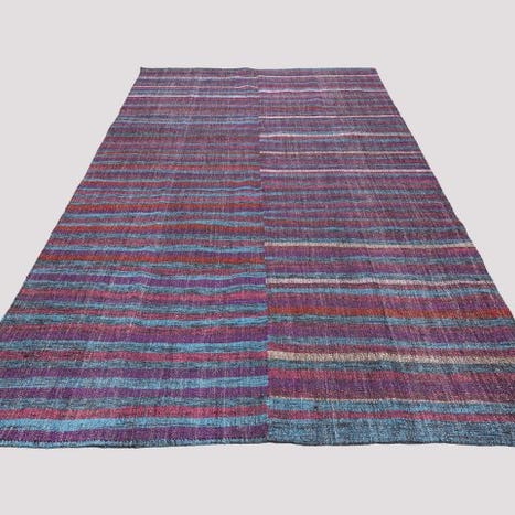 Transformér dit rum med tidløs elegance! Dette håndlavede stribede kilim-teppe tilfører et moderne design og livlige farver til ethvert værelse. Omhyggeligt fremstillet og fuld af karakter er vores tæpper en harmonisk blanding af tradition og moderne stil. Opgrader din boligindretning med et unikt statement-piece, der udstråler varme og sofistikation.