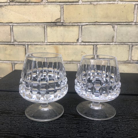 Elegant cognacservice i facetteret krystal fra mærket Nachtmann, kendt for kvaliteten og glansen i sit krystal.