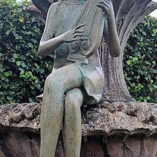 Smukt billede af en fe helt lavet af bronze i antikgrøn.