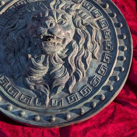 Bronze vægfontænefigur fra 1970–1980 med magisk ansigt; højde 35 cm, bredde 30 cm, dybde 13 cm, i fremragende stand. Klik på den blå "gå til varen" knap, for at købe eller byde på denne vare. Den samlede pris vil blive vist inden du afgiver dit bud.