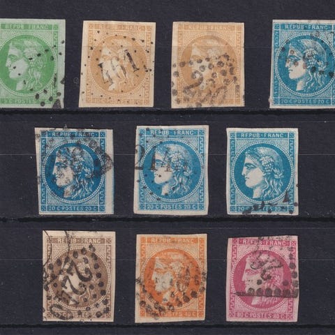 Frankrig 1876 - Helt sæt af Sages 'Type I', fra nr. 61 til nr. 72 og nr. 105 ...