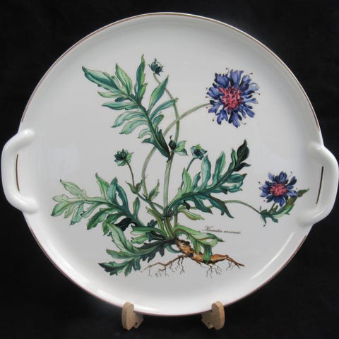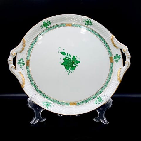 Smukt rundt serveringsfad med håndtag, håndmalet i porcelæn fra den ungarske fabrikant Herend