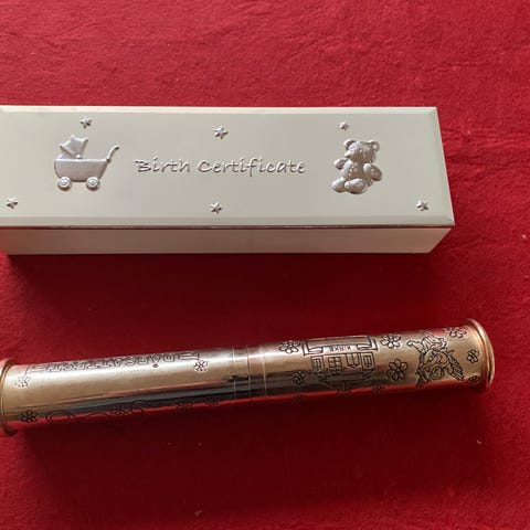 min første tand og hårtot, skrin med bamser l 10 cm h 9 cm kr. 50,-