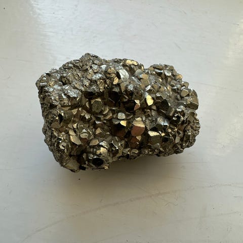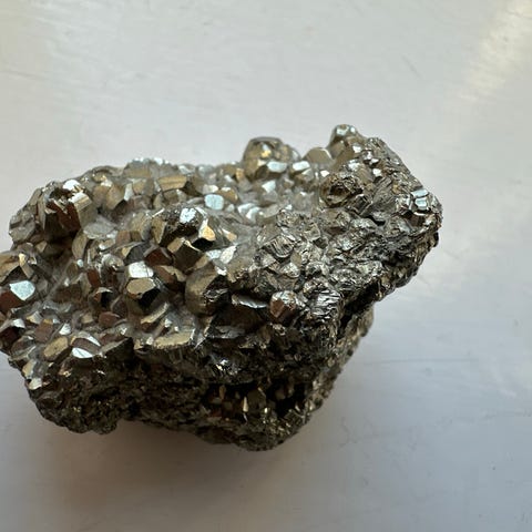 Velegnet som dekorationsgenstand i hjemmet, fx på hylde, bord eller reol. Stenen fremstår rå og ubehandlet med synlige krystalspidser og variationer i farvetone og struktur, som er naturlige for denne type mineral.