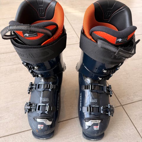 Super lækker Technica Mach1 i flex 120. Længden er 260-265 og svarer til en størrelse 41 i sko. De er kun brugt i en uge, så de er næsten helt nye. Det er topmodellen med CAS system og fiberglas i hælen. Med Quadra teknologi - ultra fit pro. Nypris 3.899,-