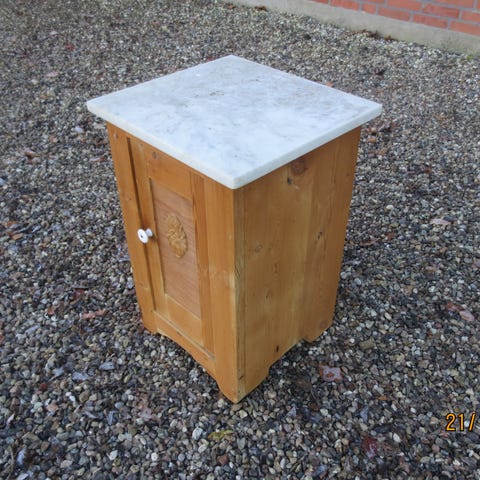 Retro sengeborde med marmor plade ovenpå , lidt høje , bagbeklædning skal have et par søm , patina