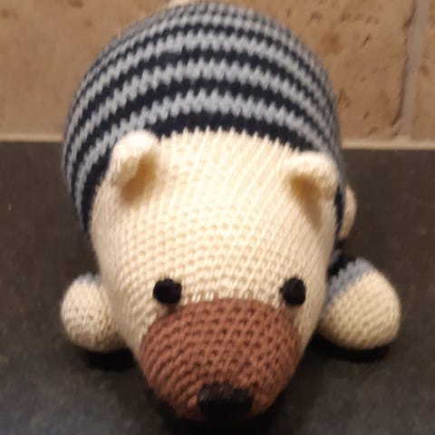 Disse hjemme hæklede bamser er lavet af acryl og uld og vat som fyld og er helt nye de er 12 cm høje