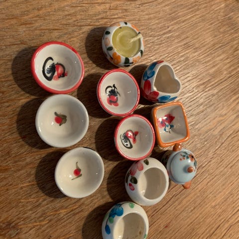 Mini kande til dukkehus eller kigkasser. 3 cm høj.