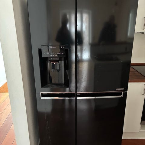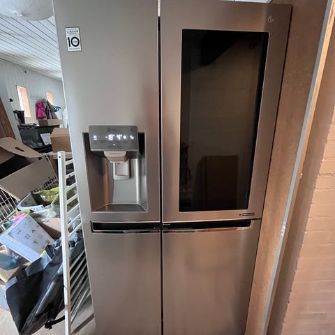 Som nyt. Gorenje side-by-side køleskab i rustfrit stål. To fuldhøje døre med integrerede håndtag og elektronisk betjeningspanel på fronten. God indretning; overskuelig opbevaring af både køle- og frostvarer i samme enhed.