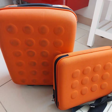 Kuffert er lavet i hård plast og kan bruges til at beskytte f.eks. computer, etc. Er brugt som salgskuffert til præsentation af produkt.