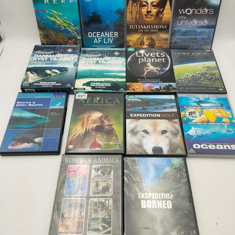 World of Animals dvd-samling med natur- og dyredokumentarer. Boksen indeholder 4 film fordelt på 2 dvd’er med fokus på forskellige vilde dyr og deres levesteder. Egnet til alle, der er interesserede i natur- og dyreprogrammer på dvd.