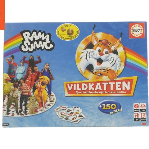 Dette er et Vildkatten spil til børn, kendt som 'My First Vildkatten'. Spillet indeholder 36 billeder og er designet til at stimulere børns intellekt og reflekser. Det inkluderer et spillebræt, opbevaringskasse, og forskellige billedbrikker. Egnet til børn mellem 2 og 4 år.