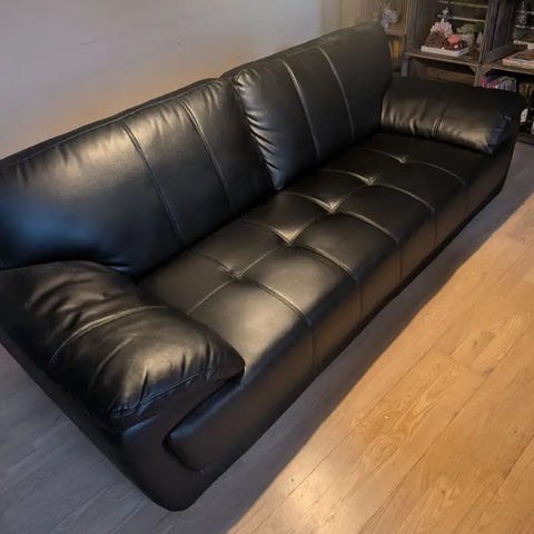 Ægte 3 Pers. Læder sofa med fordskammel og et lille hvidt bord