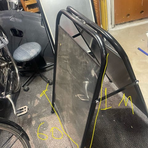 Gadeskilt, der måler 60x120 cm. I god stand med hjul