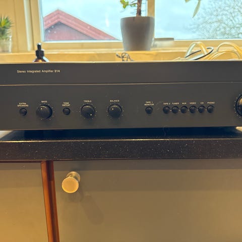 Flot og velfungerende stereoforstærker. Sælges grundet køb af aktive højtalere. Fjernbetjening medfølger. "Klappen" bagpå fjernbetjeningen mangler, men den virker 100% som den skal.