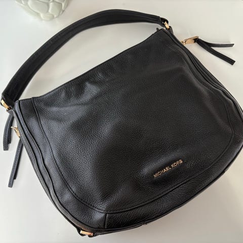 Michael Kors læder skuldertaske til kvinde. Tasken er fremstillet i glat brunt læder med guldtonet hardware og MK-logo på fronten. Den har top-hank samt aftagelig og justerbar skulderrem med kædedetaljer, så den kan bæres både i hånden og over skulderen. Indvendigt er der et hovedrum med foring, mindre rum til småting samt kortlommer i siden. Lukning med klap og drejelås på fronten. Egnet til daglig brug, arbejde eller mindre personlige ejendele som pung, telefon og nøgler. Nypris 3500kr
