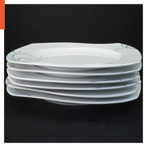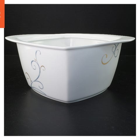 Et sæt bestående af tre porcelænsfade og skåle. Sættet inkluderer en dyb skål, et medium størrelse fad, og et stort serveringsfad. Dimensionerne er henholdsvis 16 cm, 25 cm, og 29 cm. Fyrklöveren Victoria kombinerer bølgende former, diskrete farver og smukke gulddetaljer. Det sarte, snoede mønster i blå, grå og guld er designet af Anne Rooslien som en hyldest til kærligheden. Lavet af porcelæn af højeste kvalitet - holdbart, tåler opvaskemaskine og perfekt til en luksuriøs borddækning, igen og igen! En fremragende bryllupsgave eller housewarming-gave.