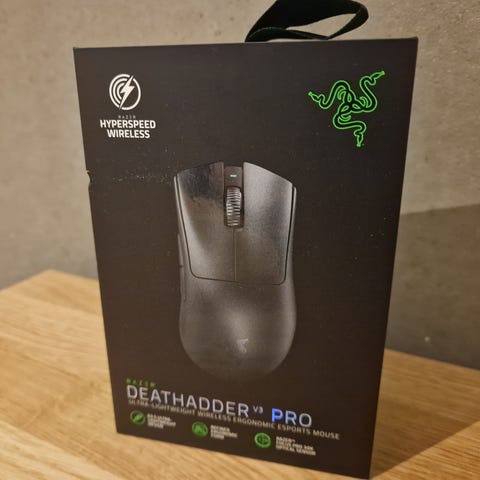 Jeg sælger min Deathadder v4 pro da den ikke passer til min hånd. Den er helt ubrugt og kasse og alt tilbehør medfølger.