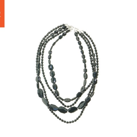 En elegant halskæde bestående af en kæde af sølvfarvet metal. Halskæden er dekoreret med brune og lyse perler i forskellige størrelser, der hænger forskudt langs kæden. Den har en længde på 46 cm og er forsynet med en lås til at lukke. Tags: halskæde, perler, smykker, elegant