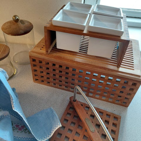 Super fint brødkasse med indbygget skærebræt som låg
