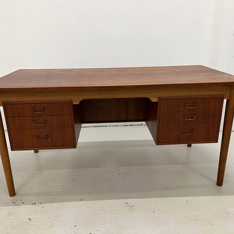 Teak skrivebord i god stand, trænger til olie, men står kniv skarp.