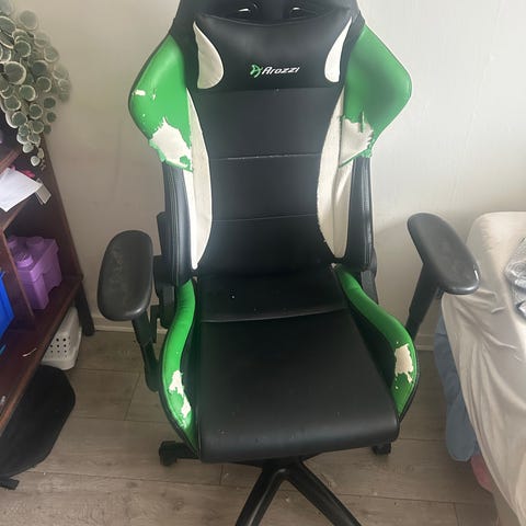 Kontorstolen fra Stokke er godt brugt som billederne viser. Den kan vippe. Man sidder enormt godt.
