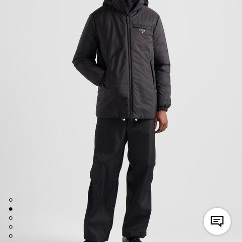 Diskrete Prada-logoer ses på brystet, ærmet og indvendigt i jakken.