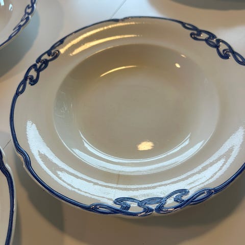 Stort fad 20 cm langt. 2 sovsekander. Den ene er lidt mørk indeni.