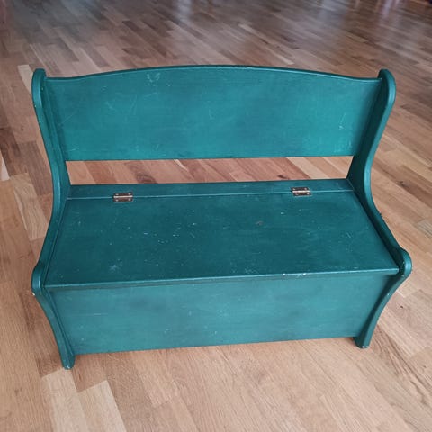 Fin junior slagbænk i massivt malet træ. Måske fra Trævarefabrikkernes Udsalg eller lign. Fremstår med få brugsspor.