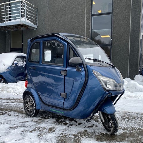 Kabinen giver tryghed året rundt, og scooteren er stabil og nem at betjene. Et fornuftigt valg, hvis funktion og fremkommelighed er vigtigere end det kosmetiske udtryk.