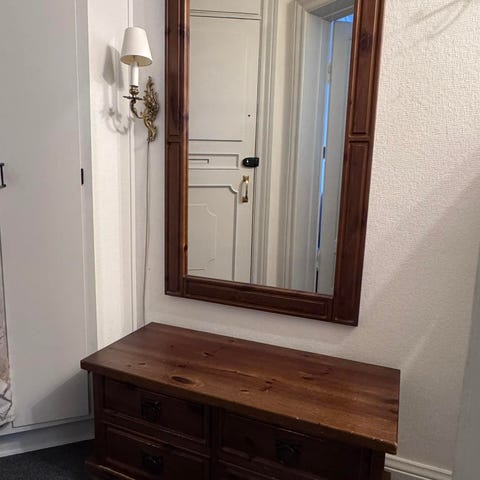 Entrésæt - hængespejl og skoreol i fyrretræ