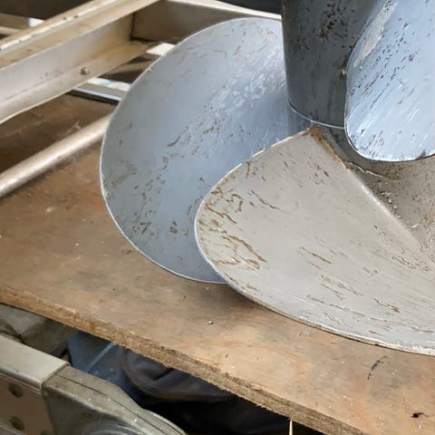Propeller har små hakker, tæring på 3 bladet (afbilledet) og et nav er en anelse ude af center. Egner sig til renovering eller midlertidig brug.