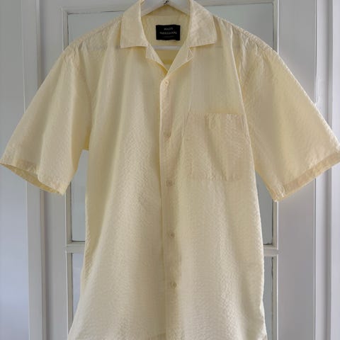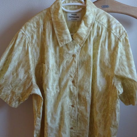 Mads Nørgaard skjorte til kvinder i str. 36. Skjorten er i blå og hvid tern og fremstillet i bomuld. Klassisk model med krave, knaplukning foran og lange ærmer med manchetter.