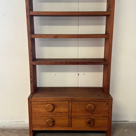 Smuk Oregon pine reol fra 70’erne, I Rainer Daumiller stil. Men formentelig en vintage IKEA. Reolen er i massiv fyrretræ, og virkelig står med sin flotte glød i træet.