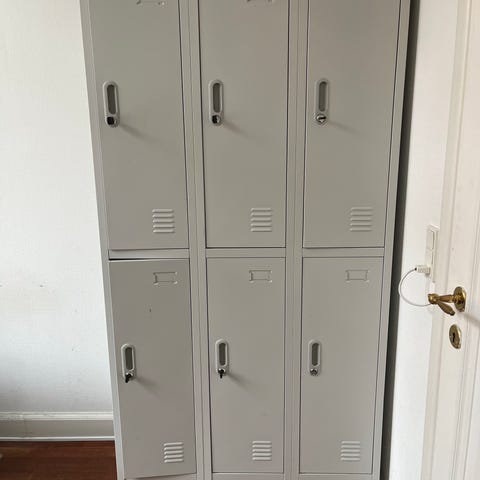 2 skuffer i bunden, den ene side med knagerække, den anden side er der 3 tilhørende hylder.
