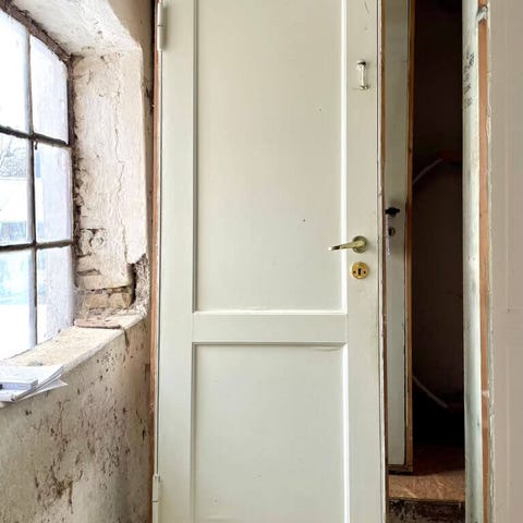 Smal, original fyldningsdør m. karm, B:70, H:200