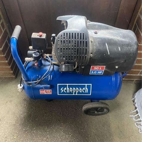 Støjsvag, Jun-Air kompressor model 6. Kompressoren er oliesmurt og egnet til trykluftopgaver i værksted, hobby eller mindre industrielle installationer, hvor der er behov for stabil trykluftforsyning.