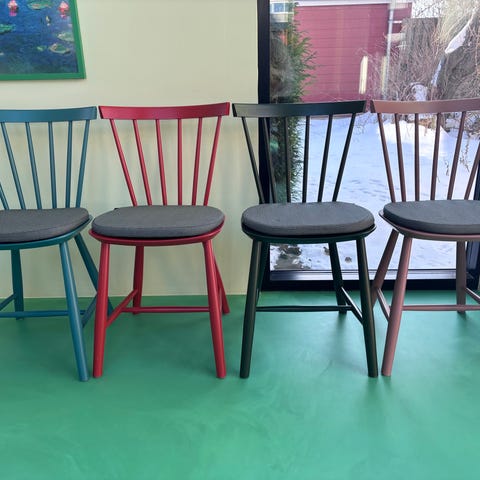 6 originale FDB J46 i bøg – støvet petroliumsgrøn