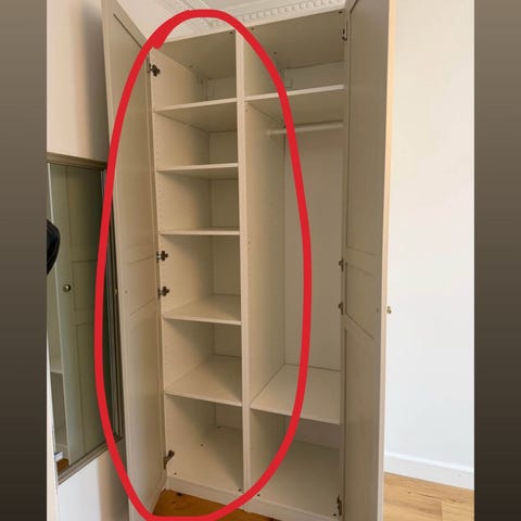 Skabet står skilt ad og med brugsspor hvorfor den billige pris. Afhentning på Amager.