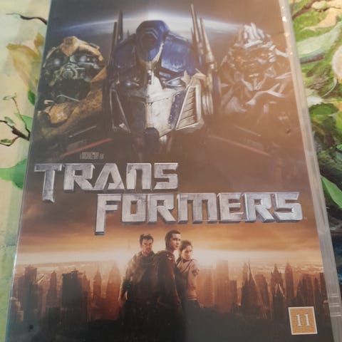 Transformers film på dvd. Omslaget viser en stor robotfigur og to mennesker i forgrunden, hvilket indikerer en science fiction- og actionfilm i Transformers-universet. Egnet til afspilning på dvd-afspillere, der understøtter standard dvd-format.