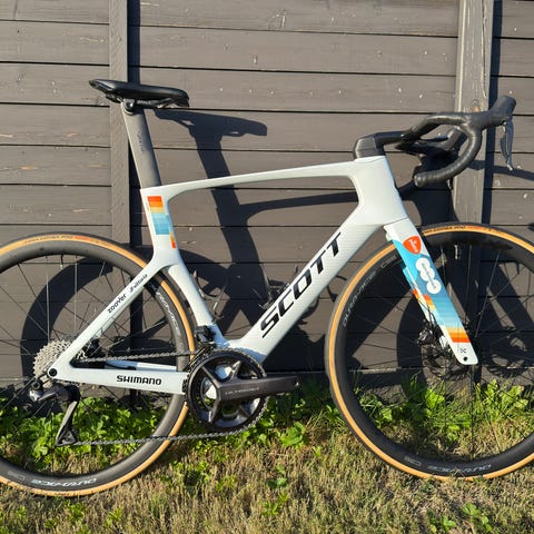 Tidligere Michelton-Scott world tour cykel kørt af Dion Smith i 2019, fuld Shimano Dura Ace gear gruppe, Scope R4C tubular cabon hjul, i str 54/M, ex pedaler