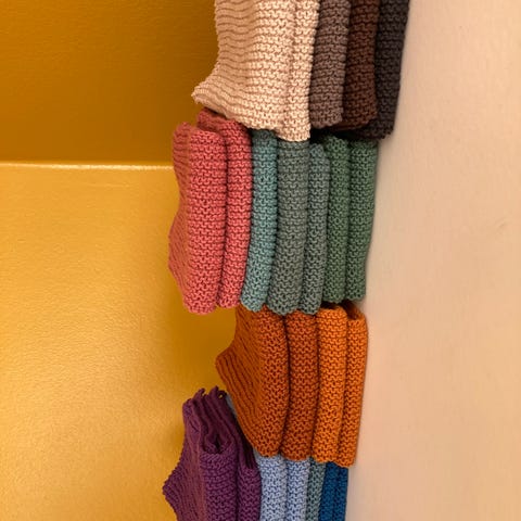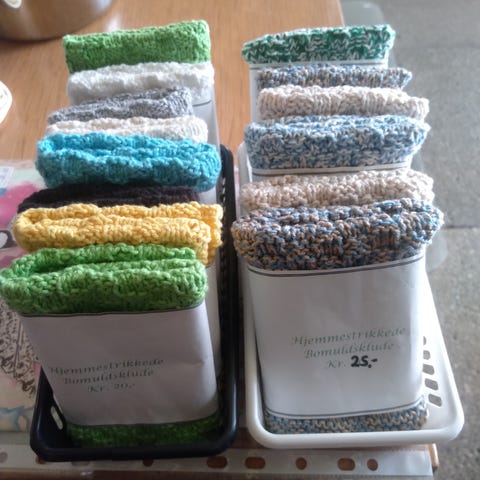 Hjemme strikkede bomulds klude . Sender gerne .