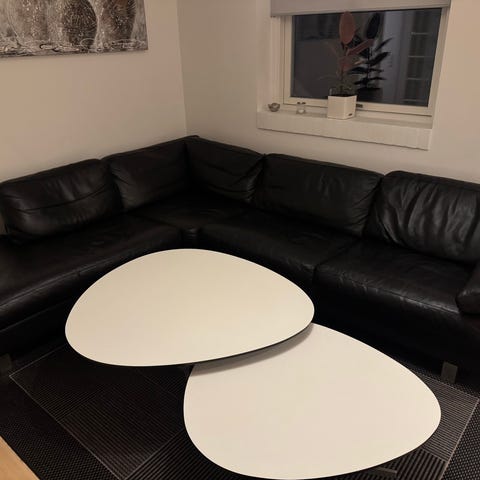 Sort hjørnesofa i ægte okselæder, næsten ny