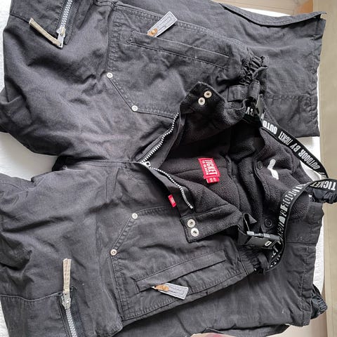 Sorte Ticket to Heaven skibukser i str. 164 / 16 år. Bukserne er sorte og fremstår som foret, velegnet til brug til ski/i koldt vejr. De har lukning med lynlås og knapper foran samt bæltestropper og seler, som kan knappes af. Der ses forstærkede paneler på indersiden af benene, som kan give ekstra slidstyrke ved brug med skistøvler. Velegnet til ski og anden udendørs vinteraktivitet. Kun brugt i forbindelse med skiferir. Nypris 1.300,00 kr