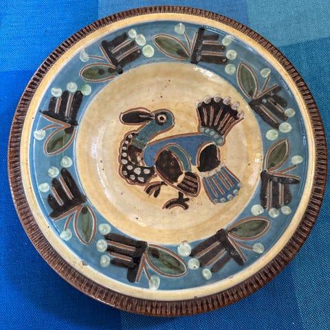 Gerd Baarstrøm (f. 1946) har lavet denne skulptur i 2010. Den forstiller en fuglekongen, der spiller bas, og er inspireret af Halfdan Rasmussens tosserier. Den har interessante detaljer og finesser med en lethed og ynde, hvor rakubrændingen fremhæver farverne.. Skulpturen står på en sort rakubrændt sokkel. Højden er cirka 30 cm. Gerd Baarstrøm er uddannet på Aarhus Kunstakademi i 1979-1982.