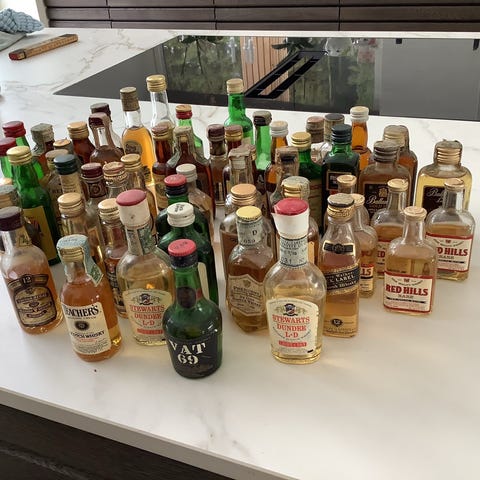 Blandet parti miniature spiritusflasker i forskellige mærker og typer. Flaskerne er i små størrelser, typisk velegnet til samling, dekoration eller som smagsprøver. Sortimentet omfatter flere forskellige varianter af spiritus, som eksempelvis cognac, likør og andre typer brændevin. Sælges samlet som ét parti.