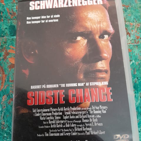 Sidste chance dvd med Arnold Schwarzenegger i hovedrollen. Filmen er baseret på Stephen Kings bestseller og er udgivet på dvd. Forsiden angiver aldersgrænse 15 år. Velegnet til samling af actionfilm på dvd.