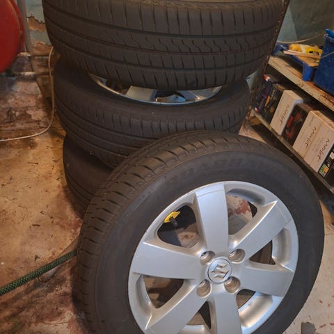 Ved kun de passer på en Suzuki Swift og dækstørrelsen står på et af billederne. De burde holde en sæson mere