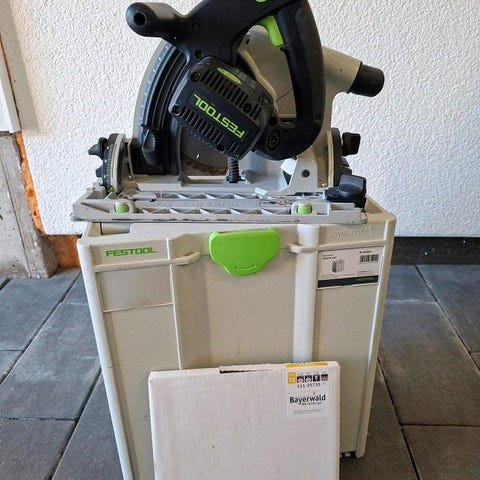 Festool TS 55 REBQ-Plus dyksav. Elektrisk rundsav/dyksav egnet til præcisionssnit i træ og pladematerialer. Modellen er beregnet til brug med føringsskinne for lige og rene snit. Velegnet til tømrer-, snedker- og gør-det-selv-opgaver, hvor der er behov for nøjagtige længde- og dyksnit.